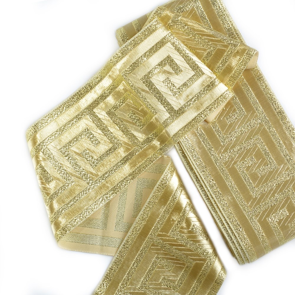 Лента отделочная жаккардовая арт.TBY.1907-4 шир.80мм цв.золото уп.8,2 м