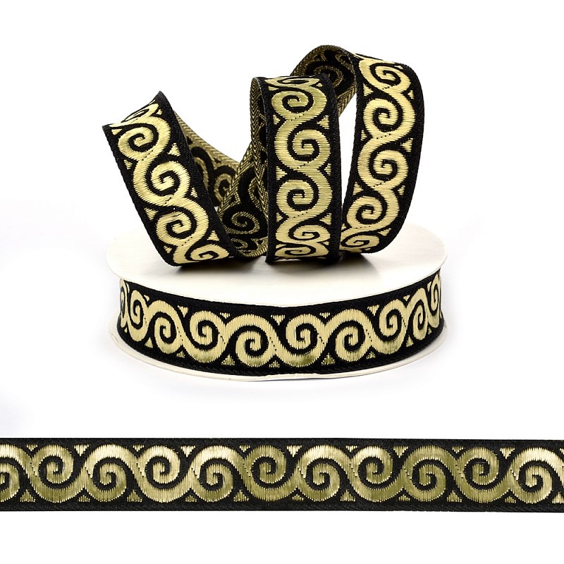 Лента (тесьма) жаккардовая арт.VB.101166 шир. 16мм цв.черный уп.10 м