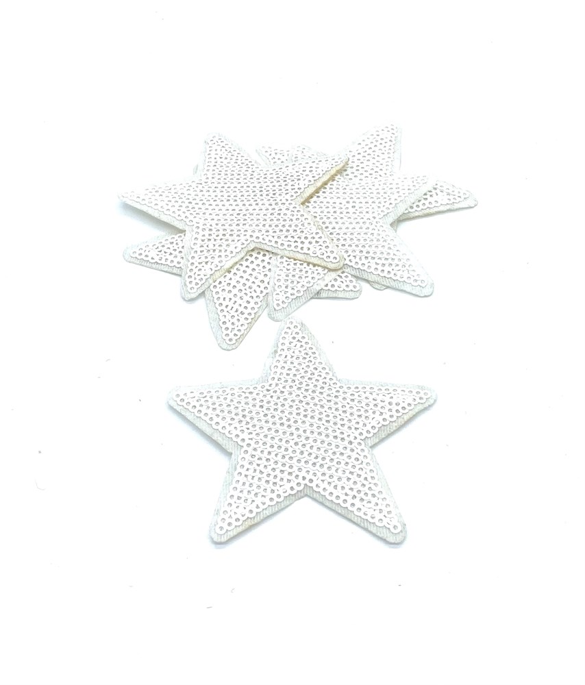 Термоаппликации с пайетками арт.KT #4-344 Звезда белый 78х75мм уп.5 шт