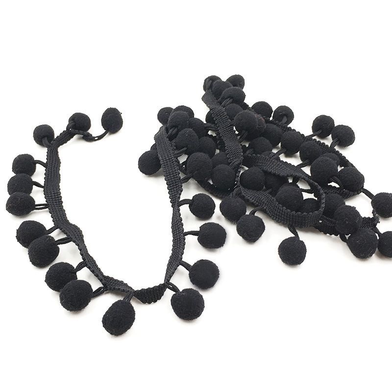 Тесьма с помпонами арт.TPK шир.20-25мм цв.черный уп.8м